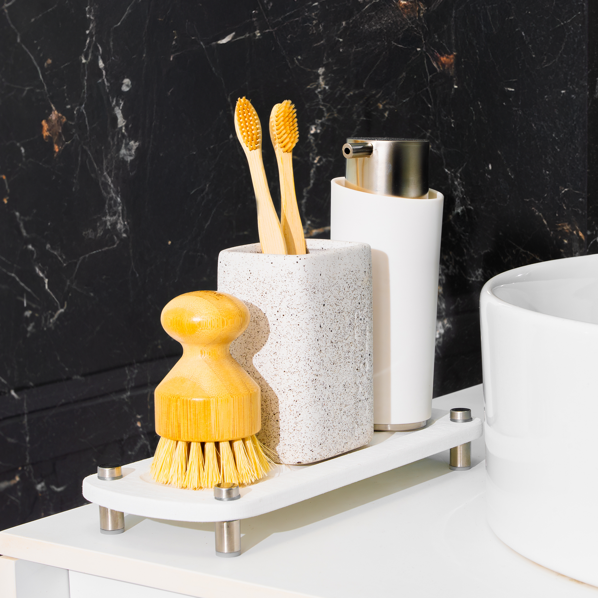 DryTray este soluția ideală pentru organizarea băii tale, aducând ordine și funcționalitate pentru săpunuri lichide, loțiuni sau alte accesorii de lângă chiuvetă, fiind realizată din diatomit 100% natural care absoarbe umezeala și se usucă rapid, prevenind acumularea de murdărie și mirosuri neplăcute.